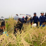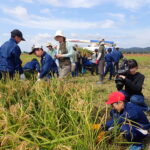 ご支援紹介 2025.10.02 令和7年度 板東小学校の環境学習【谷口さんの田んぼでの稲刈り】 板東小学校5年生児童(2クラス38名)を対象とした稲刈りを実施しました!※板東小学校でのコウノトリ学習の支援は.......