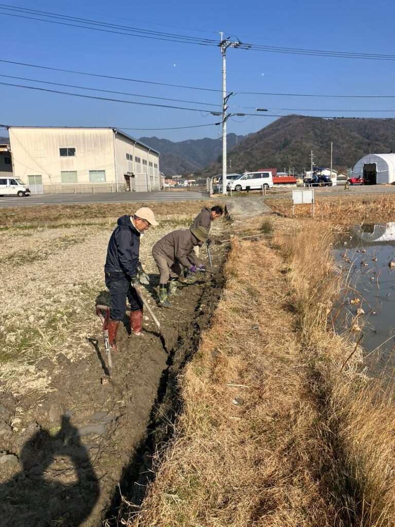 このあたりの土は泥状で重たいのに、さらに水を含んでずっしりとした重さと、スコップに張り付いて取れないという、作業効率があげられない大変な状況での作業でした。