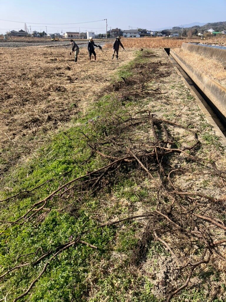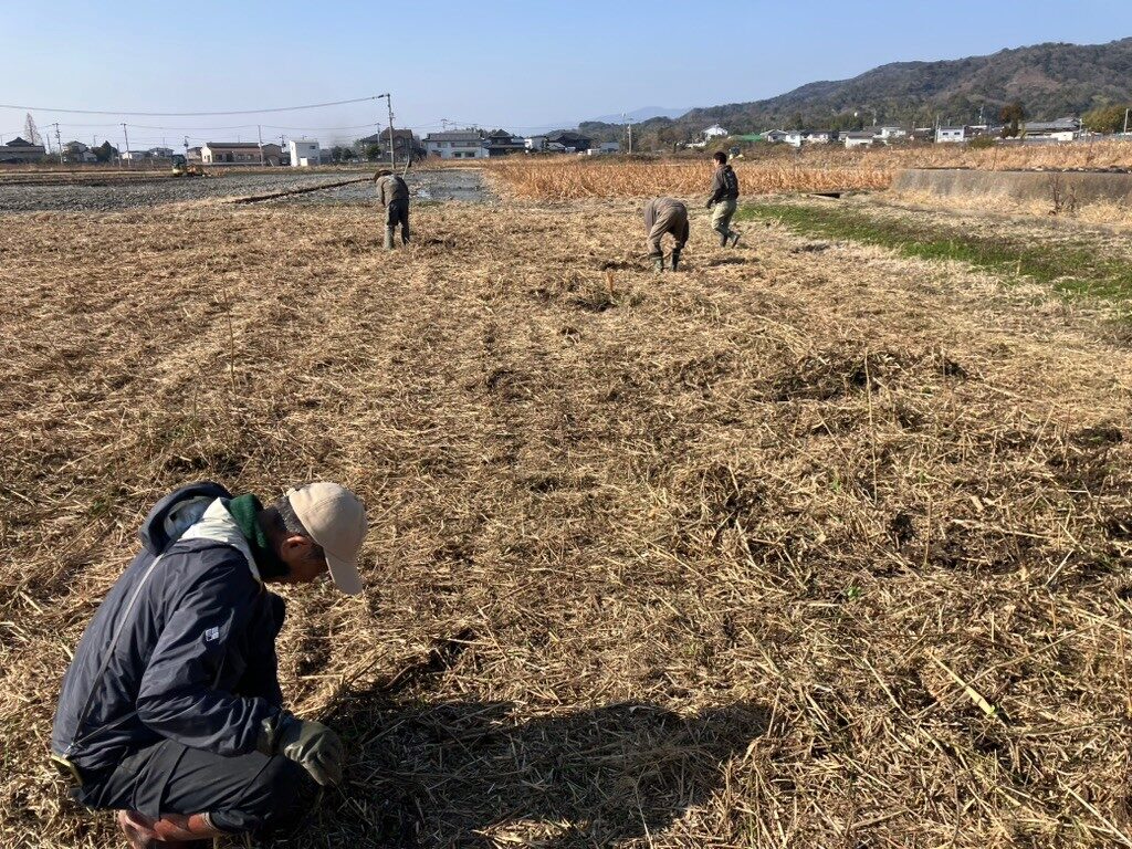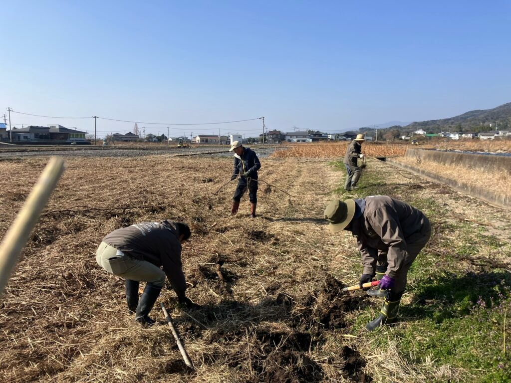 そして後半では、開墾中の休耕田に移動し、ノイバラの根を取る作業もしました。