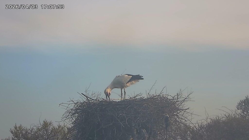 順調に抱卵を続けていた鳴門板東ペアの巣で、4月3日午後に母鳥あさひ(J0480)が、孵化したひなに餌を与えるための吐き出しをしました。